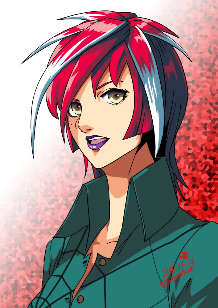 かわずやケロイ ペルソナ2罰の好きなキャラの一人 芹沢うらら というキャラの様なものを描き描き 難解な髪型で大変なのと完全に男なので修正しながら練習します
